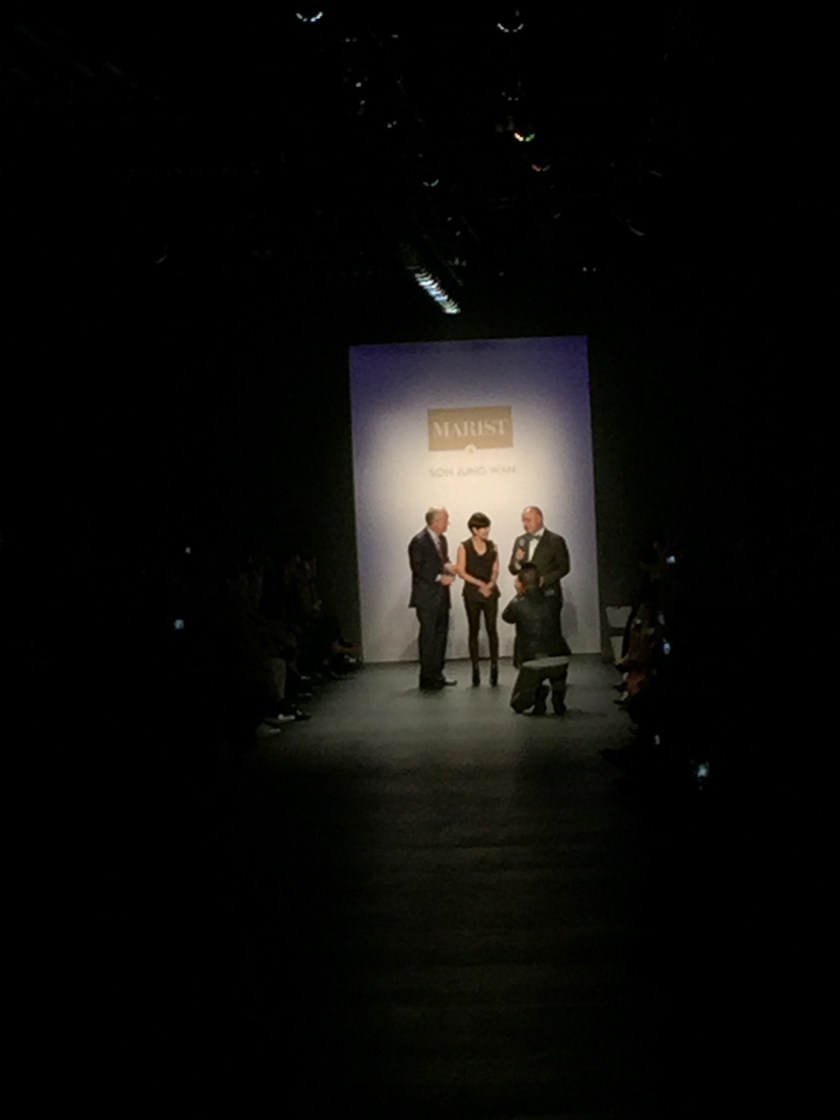 As an application to the class, we were instructed to present either a creative proponent or writing piece for the fashion magazine. I went on the creative side. As it was the 30th anniversary of the Silver Needle Fashion Snow, this magazine was going to be a big one. My concept involved a timeline- a photographic evolution of the Marist fashion department. I ended up printing out 30 photos representing the past three decades at Marist Fashion. I framed each photo with a polaroid frame print out as well. I then cut a black foam board into three “X” shapes, attached at the top and bottom corners. Each X featured ten years of photographs, a play on roman numerals for 30. However, the trick was when i folded the timeline in half. It created a zig zag shape, in which I hand painted the Marist “fancy” “M.” (Photos of this project to come)