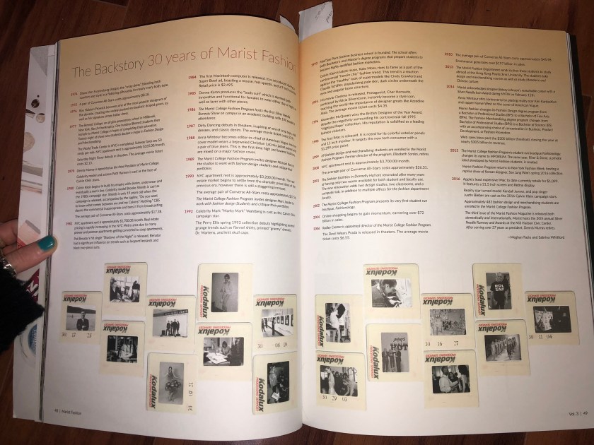 This project, however, was the inspiration for a polaroid timeline featured in the Marist Fashion Magazine for our 30th year in Fashion.