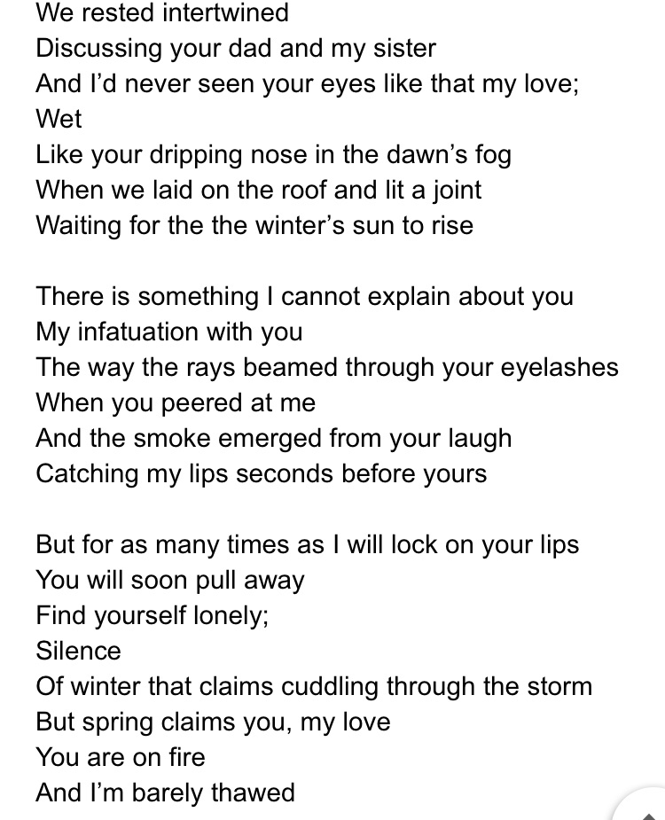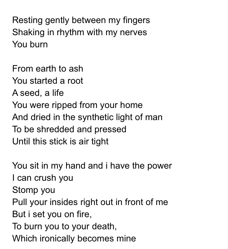 Poetry Can I Bum One? Share this: Share on X (Opens in new window) X Share on Facebook (Opens in new window) Facebook Like Loading...